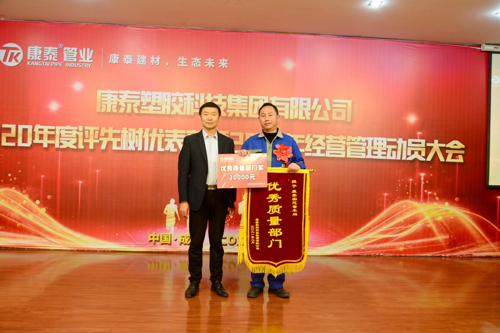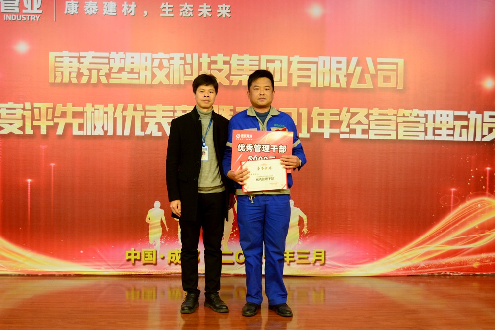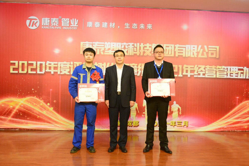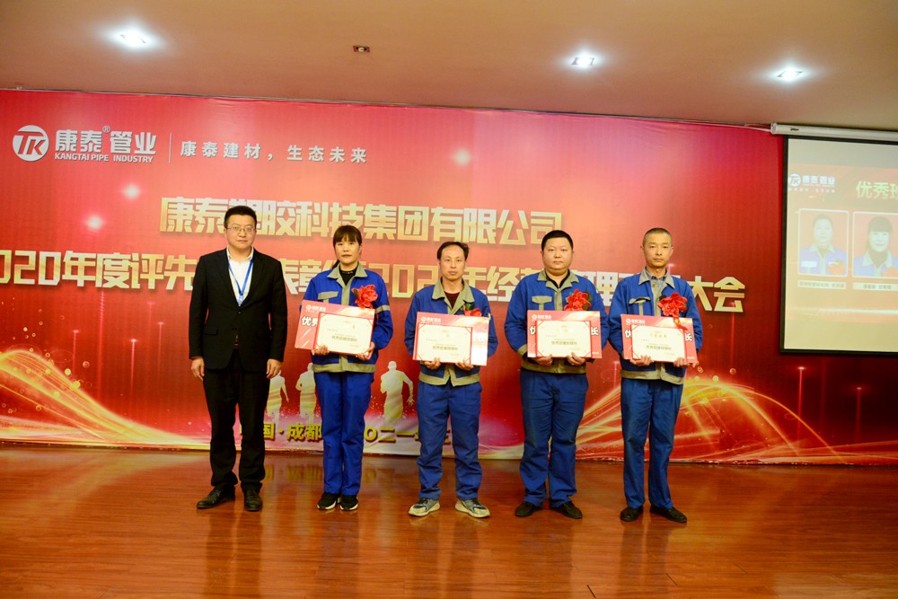 大會(huì)首先進(jìn)行第一項(xiàng)議程,先進(jìn)個(gè)人和集體表彰。集團(tuán)和成都子公司領(lǐng)導(dǎo)分別上臺(tái)宣讀各獎(jiǎng)項(xiàng)獲獎(jiǎng)人員和集體的名單并為他們進(jìn)行了頒獎(jiǎng)。2020年,康泰集團(tuán)應(yīng)對(duì)疫情挑戰(zhàn)、保持定力、改革創(chuàng)新、提升效率、開(kāi)拓進(jìn)取、真抓實(shí)干,把握行業(yè)政策的新變化和新形勢(shì),圓滿(mǎn)完成了各項(xiàng)工作任務(wù)指標(biāo),涌現(xiàn)了一大批團(tuán)結(jié)協(xié)作、開(kāi)拓進(jìn)取的先進(jìn)集體和愛(ài)崗敬業(yè)、勤奮工作的先進(jìn)個(gè)人。2021年是集團(tuán)“五五戰(zhàn)略”規(guī)劃的開(kāi)局之年,希望受到表彰的先進(jìn)單位和先進(jìn)個(gè)人要珍惜榮譽(yù),再接再厲,保持和發(fā)揚(yáng)精益求精、嚴(yán)謹(jǐn)專(zhuān)注、創(chuàng)新傳承的工匠精神,續(xù)寫(xiě)更大的輝煌。