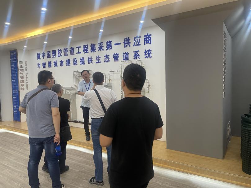 參觀前,雙方在會客室一同觀看了康泰集團企業(yè)宣傳片。隨后,副總經(jīng)理林化平帶領(lǐng)大家來到展廳,對康泰集團的發(fā)展歷程以及公司現(xiàn)有產(chǎn)品,特別是公司推出的新品MPVE、鋼絲網(wǎng)骨架復(fù)合管等做了詳細的講解與介紹。在生產(chǎn)車間,河南中核五院領(lǐng)導(dǎo)仔細觀看了康泰產(chǎn)品生產(chǎn)過程,并從原材料進廠把關(guān)、管道過程生產(chǎn)、產(chǎn)品質(zhì)量管控以及出產(chǎn)檢驗作了詳細的了解,對公司生產(chǎn)現(xiàn)場的系統(tǒng)化、規(guī)范化表示贊賞。