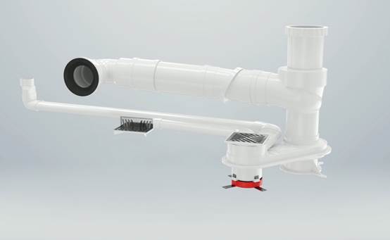 所有橫支管在排水匯集器處共用一個水封,排水器具下方不設(shè)存水彎,所有器具連接均選用彎頭,大大減少排水管道堵塞點(diǎn)?!肮灿盟狻笔钦麄€系統(tǒng)中所有廢水管唯一的存水彎,“共用水封”作為唯一可能的堵塞點(diǎn),這套系統(tǒng)為此特地設(shè)計了集成檢修口,如果出現(xiàn)堵塞的情況,也可自己輕松完成清通。