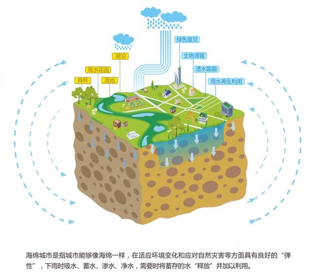 ?????? 海綿城市是指通過建設(shè)綠色屋頂、可滲透路面、下凹式綠地、城區(qū)河湖水域和污水處理設(shè)施等,加強(qiáng)城市對自然災(zāi)害的承載力,下雨時(shí)吸水、蓄水、滲水、凈水,需要時(shí)將蓄存的水“釋放”并加以利用。當(dāng)然,實(shí)現(xiàn)“海綿城市”的前提是,城市里擁有強(qiáng)大的雨水快速收集、排放管網(wǎng)系統(tǒng)。