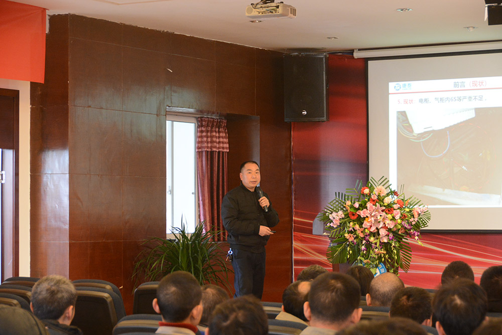圖為TPM項目組組長、生產(chǎn)副總監(jiān)李志堅做報告