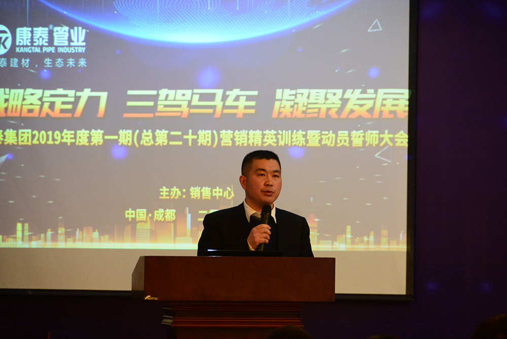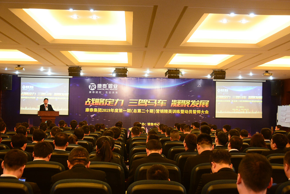 在全場熱烈的掌聲中,林總裁上臺作了熱情洋溢的新年致辭和動員講話。林總裁首先對集團公司在2018年取得的優(yōu)異業(yè)績向全體銷售人員的付出表示了感謝。林總裁表示,康泰的發(fā)展定位就是做中國工程集采第一供應(yīng)商,2019年是充滿挑戰(zhàn)的一年,也是為實現(xiàn)三年目標(biāo)打基礎(chǔ)的一年。我們要充分發(fā)揮三駕馬車——發(fā)展民建、發(fā)展網(wǎng)絡(luò)、發(fā)展市政的優(yōu)勢,切實做到品牌強大、技術(shù)強大、網(wǎng)絡(luò)強大、團隊強大,提升公司的核心競爭力。